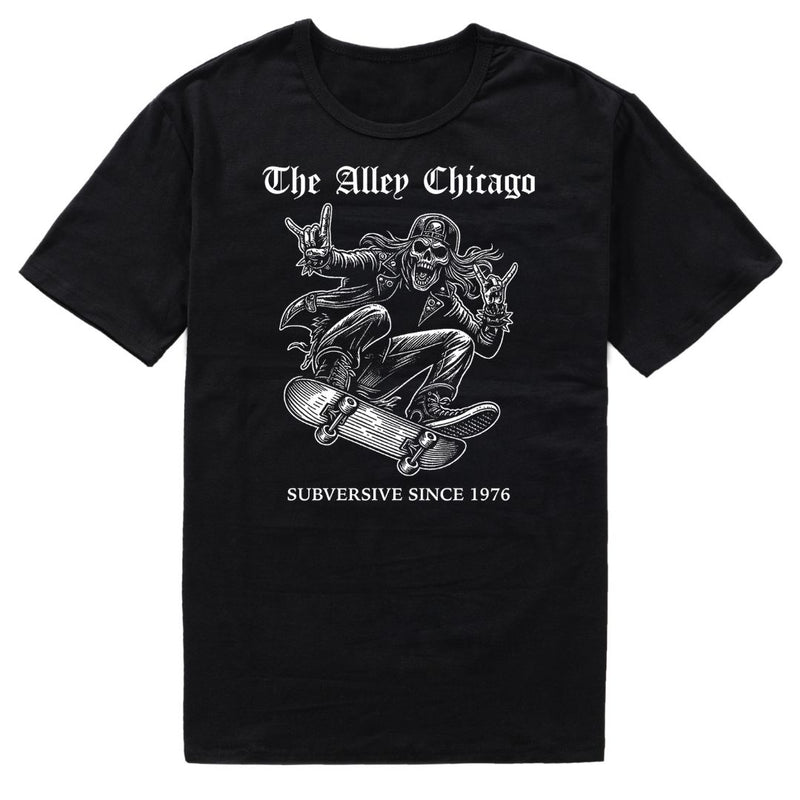 Death Skater Tshirt: Grind on this! Printed in white on solid black 100% cotton men's cut tshirt.