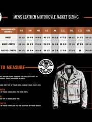 The Mens Leather Motorcycle Jacket - classic look with durability. Iconic Brando styling. 100% genuine leather. 3 front heavy duty YKK zippered pockets and 1 snap pocket, front snap down collar and heavy duty zippers at the wrist as well as nickel plated snaps. Sizes XXSmall-8XL!